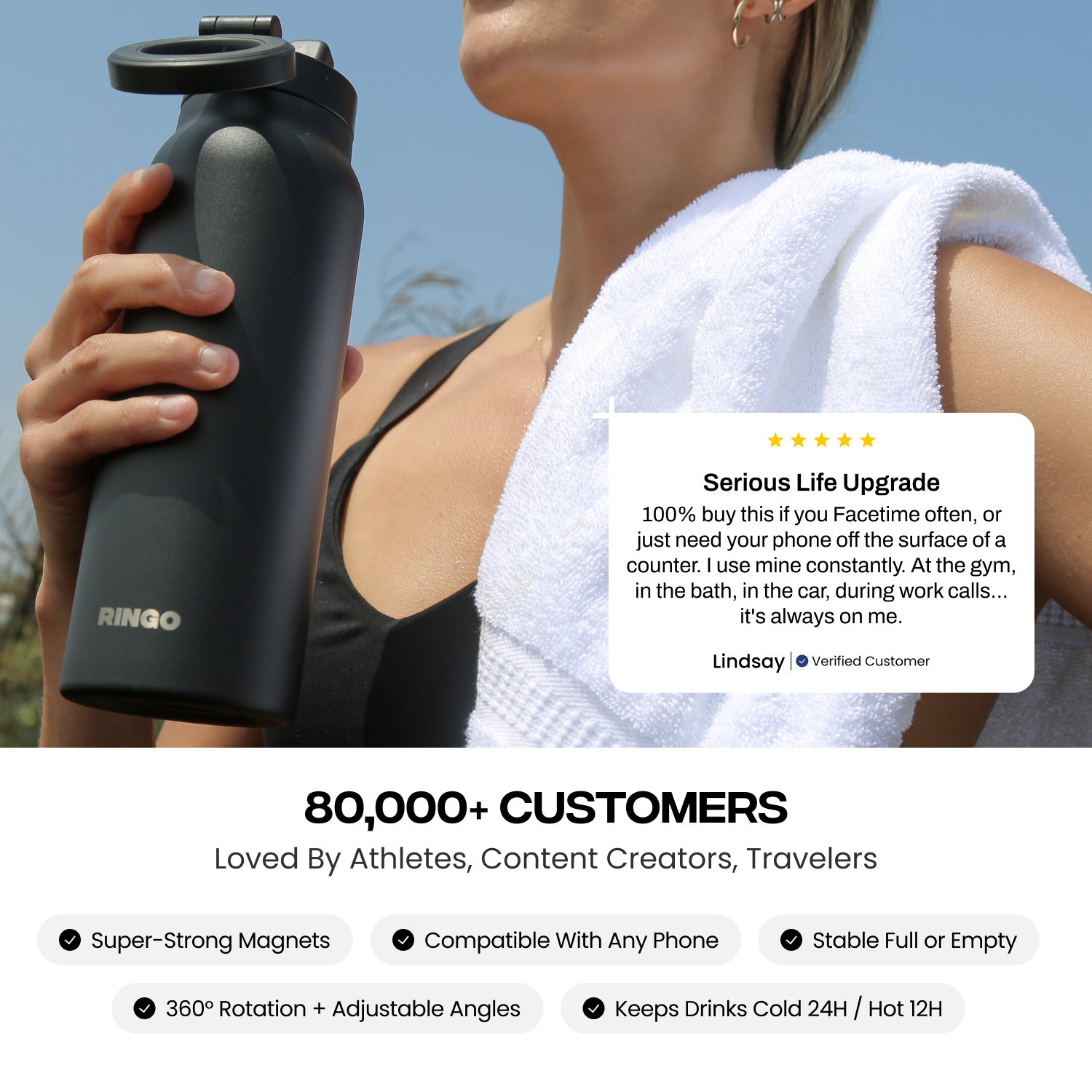 Hydration + Phone Mount in One → Stay refreshed and film hands-free.